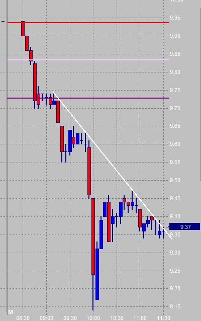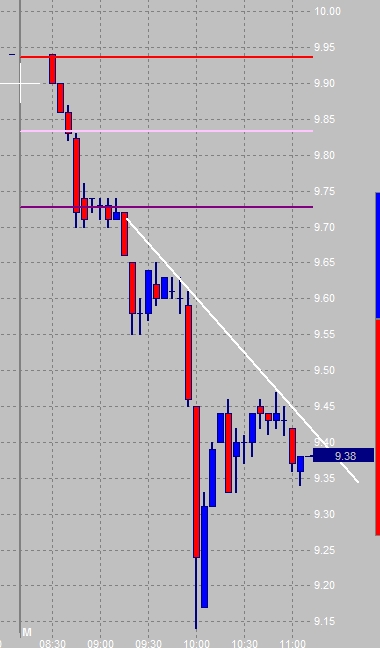 I see volume support at 9.50,so a spike down to there may be worth a shot,although shares on a dip like that are snatched up very quick,leaving me sometimes with no purchase at all on a AON limit,or very few bought on a regular limit,not worth trading.