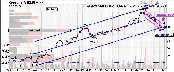 RE XLE. I'm looking at the chart and it looks like the channel has been hit many times at different points. Is there a way to know which one is the "real" channel long?
