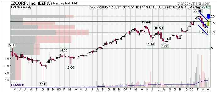 EZPW: nice buy there. I hope you bought that little pull back looking for some more waves at that price. If you did, then good fer you!