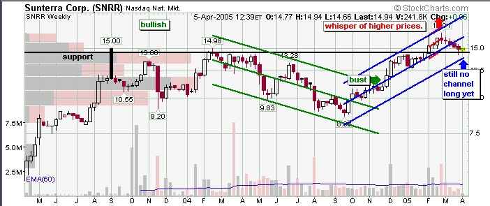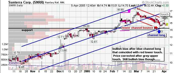 Target: A good target is the gap down projection, which is the end of day gapx2. Obviously I can't know that until the end of day today. But if the hod stays in place then the gap equals $2.74. So if today's high remains 12.67, then 12.67-2.74=9.93 (which is in line with the weekly lower blue channel, so it's doable). So the gap projection is $9.93. My short from 12.60 gives me $2.67 profit or roughly 26% profit. I'm only risking a stop over hod, which is 0.8% risk. Now that folks is one outstanding risk reward. Who says perfect entries aren't worth searching for. Will I get it? Lord knows. But you've got to be in it to win it!