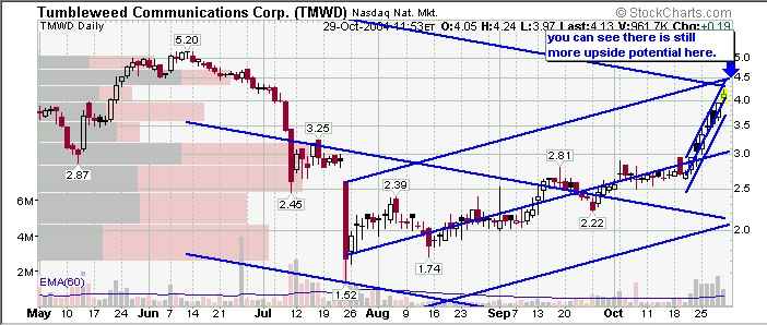 Concerning TMWD,I pulled the plug too early again yesterday at 3.74,now real close to 4.Your opinion on this chart?