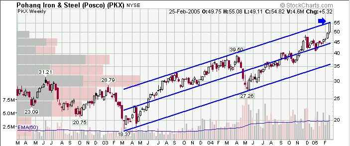 I bought PKX on 2/2/05 and as of recently has gone over 20% gain but in the last 2 days alone it is up nearly 10%. Is this a sign I should start thinking of selling or is it one that is good and I should hold onto it? Any ideas would be great I appreciate all your help.